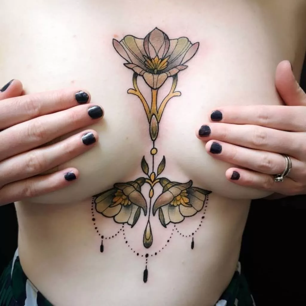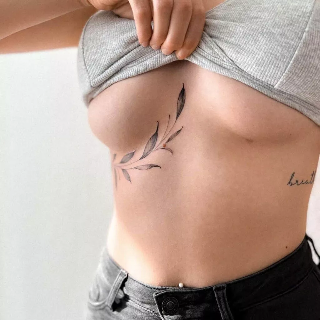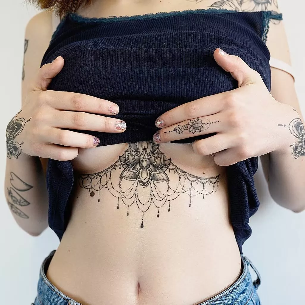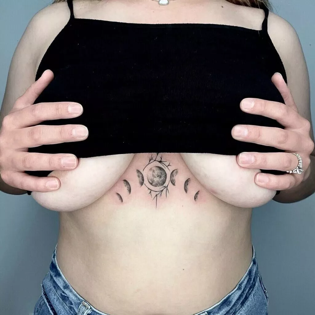 Underboob tattoos follow the natural shape of the chest. Popular choices include: