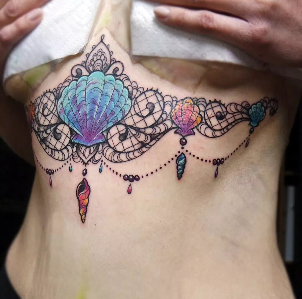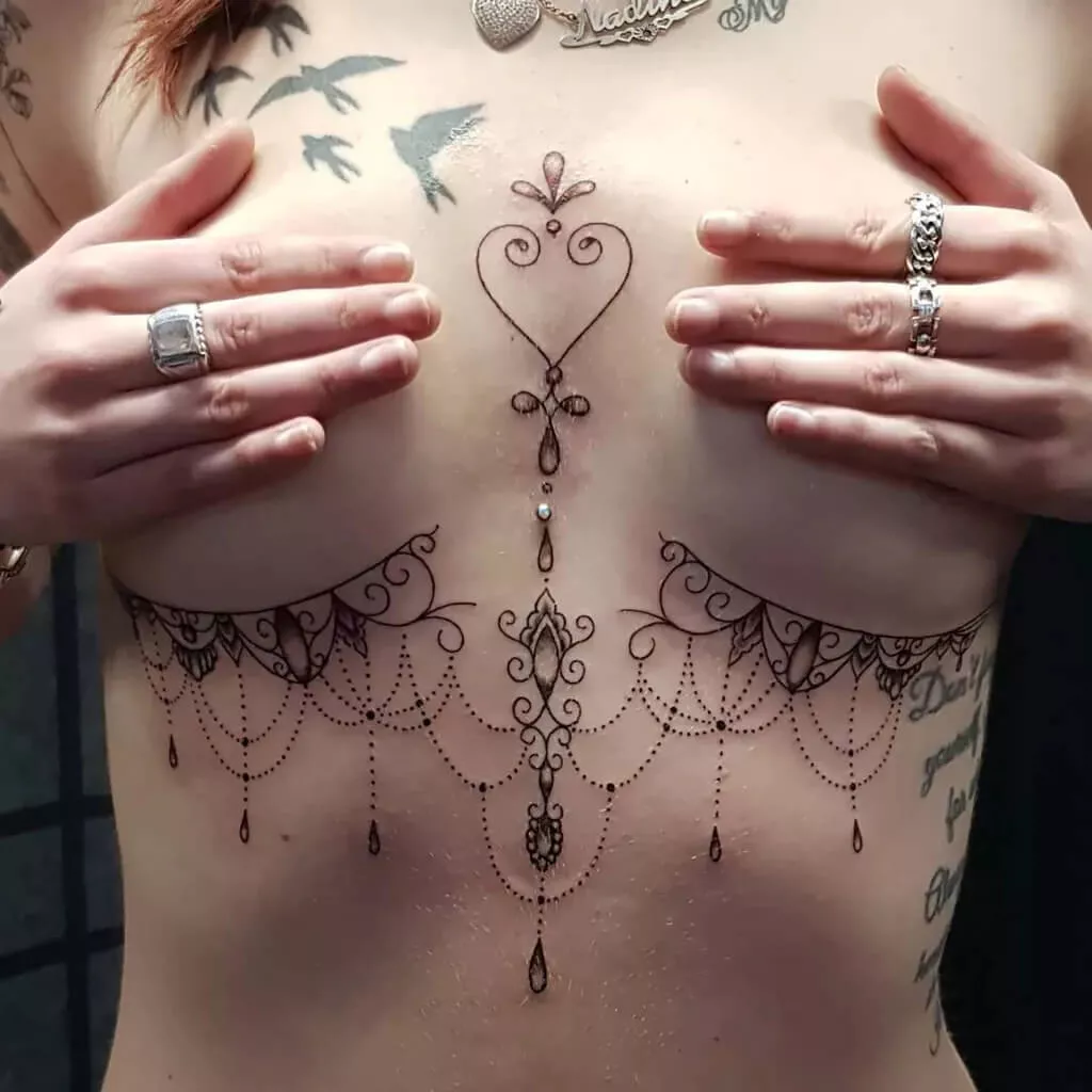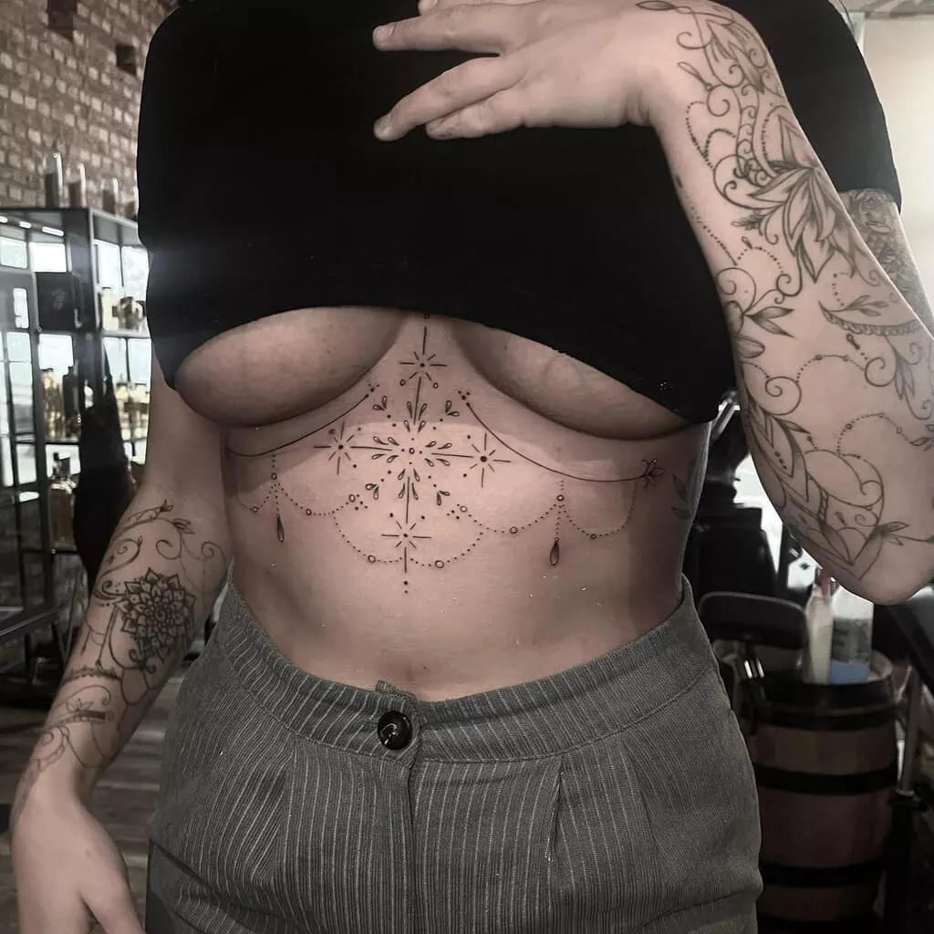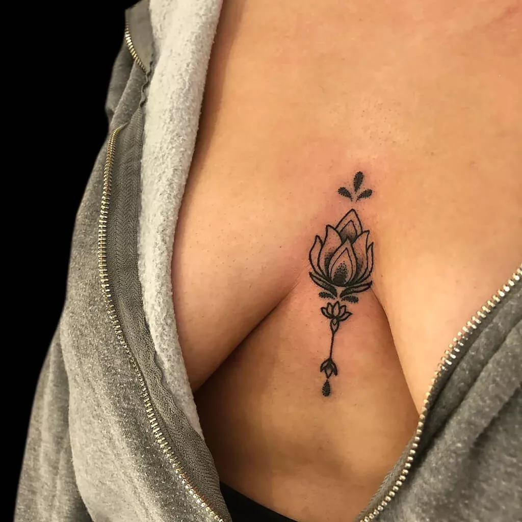 Underboob tattoos follow the natural shape of the chest. Popular choices include: