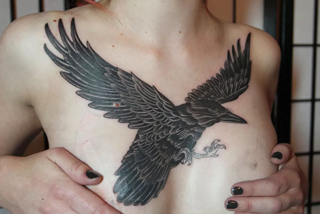 Most breast tattoos take at least four to six weeks to heal. After that, apply sunscreen whenever the tattoo will be exposed to sunlight. UV rays causes fading faster on the chest.